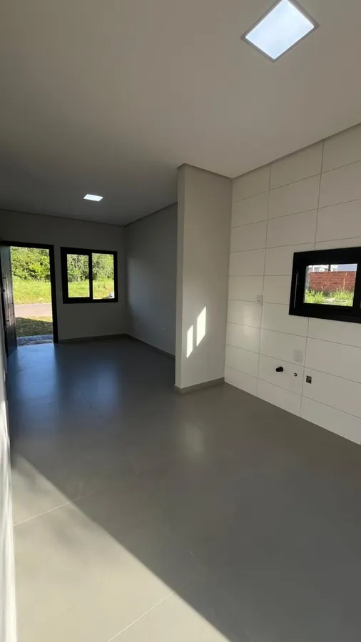 Com 57m² de área construída, o imóvel possui 2 dormitórios, banheiro social, sala e cozinha integradas, proporcionando um ambiente funcional e aconchegante, além de lavanderia.
