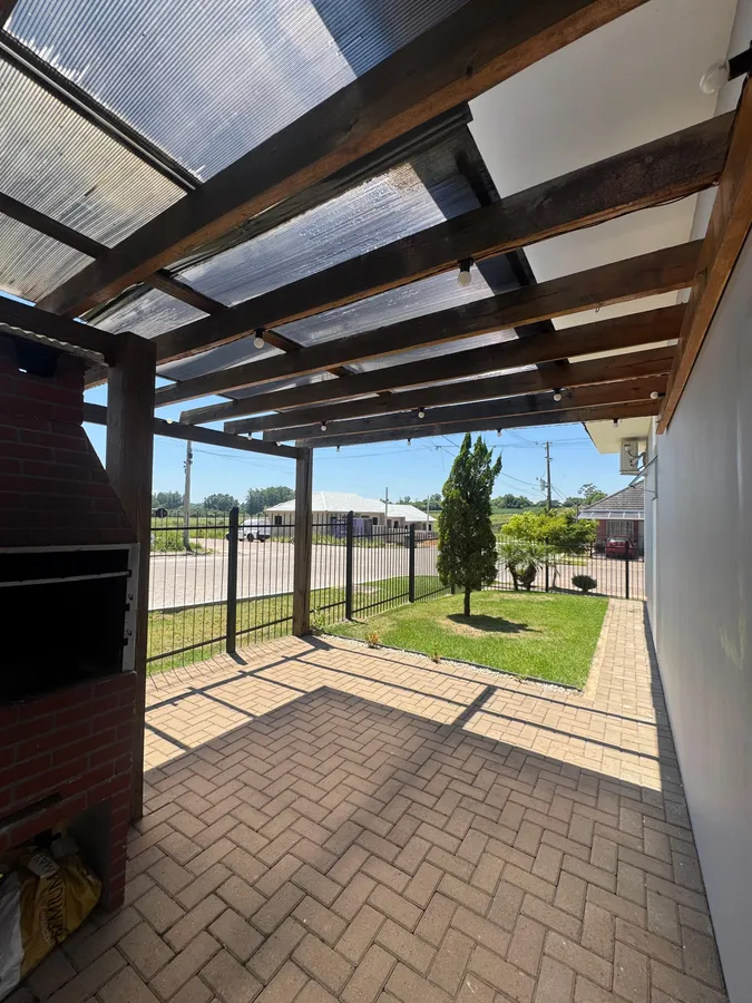 Pátio com pergolado e churrasqueira